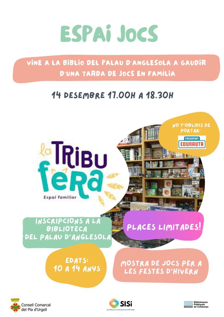 Vine a la biblio del Palau d’Anglesola a gaudir d’una tarda de jocs en família